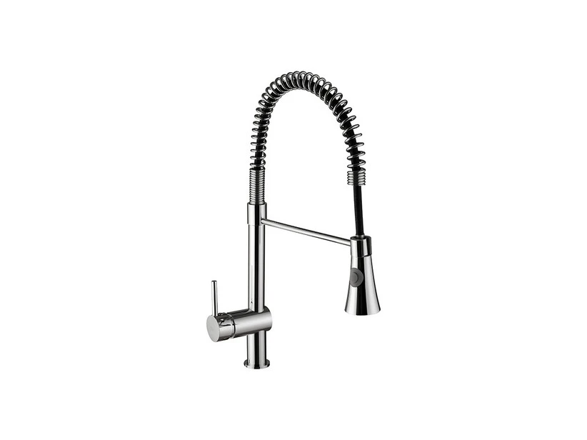 FIOLET Miscelatore monoforo lavello cucina con bocca a molla orientabile e doccia a 2 getti. Questo miscelatore lavello cucina ha delle linee tondeggianti e morbide, il design è moderno ed elegante ed ha una bocca a molla orientabile di 360° per facilitare la pulizia e il lavaggio delle stoviglie. Il miscelatore lavello cucina ha inclusa una doccetta con 2 getti tra cui scegliere: un getto singolo e un getto a microgocce, sta a te decidere quale utilizzare in base alle diverse necessità
