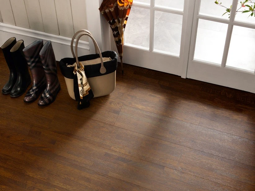 IPERCERAMICA propone un parquet in rovere naturale nei toni del marrone: le doghe hanno sfumature diverse, che vanno dal marrone con sfumature dorate fino a quello più intenso.