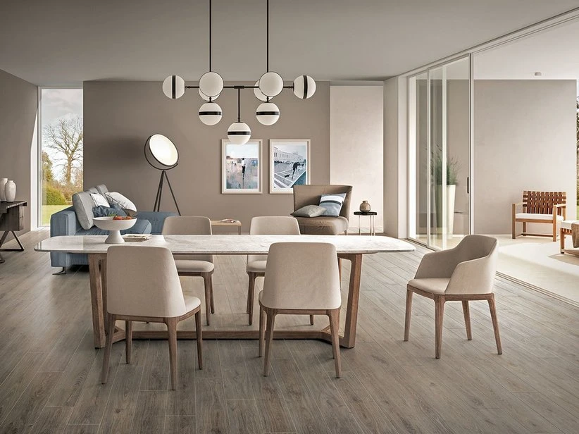 Pavimento in laminato, finitura Rovere grigio, dimensioni 193x1380mm, spessore 8mm, categoria resistenza al calpestio AC4, destinazione ed intensità d’uso 23/32