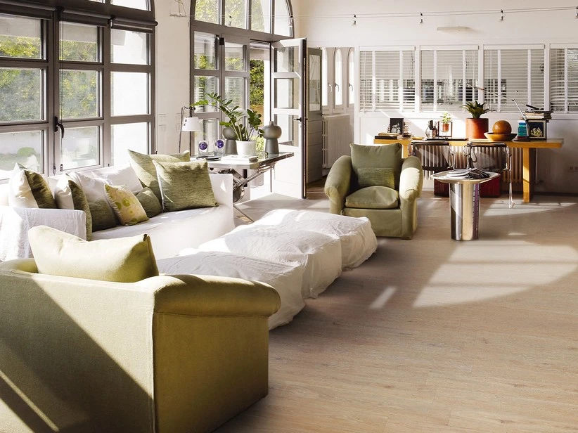 Il prodotto riproduce l’effetto di un legno rovere in una tonalità molto naturale: un color sabbia, ricco di sfumature tono-su-tono.