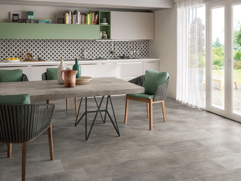 Il prodotto riproduce fedelmente l’effetto del cemento, con le sue le sfumature di colore, le inclusioni e l’effetto materico. Il colore è un grigio neutro e intenso, facilmente abbinabile ad ambienti, colori ed elementi di arredo contemporanei.