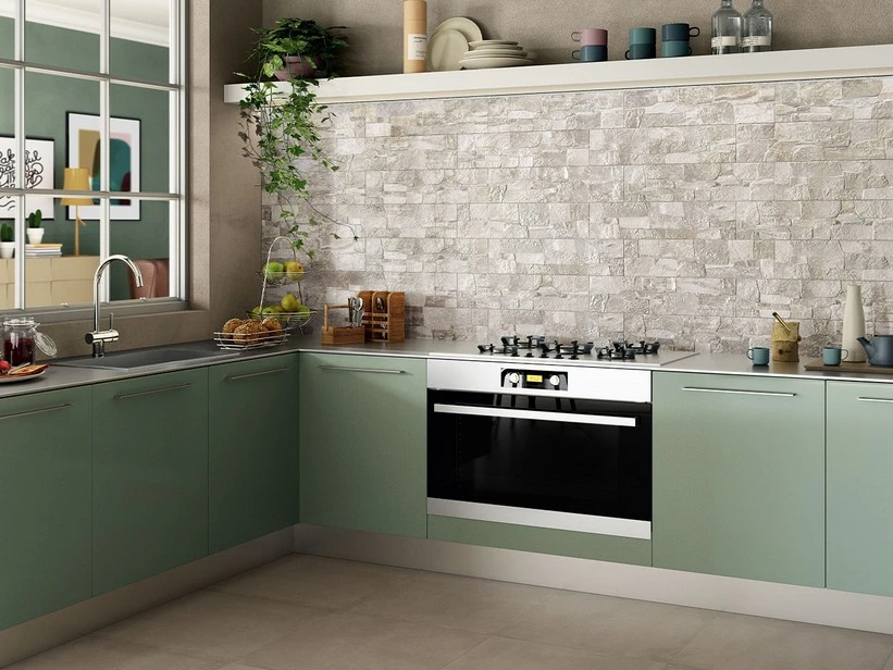 Serie in gres porcellanato che riproduce molto fedelmente l’effetto di un muretto composto da elementi di diversa dimensione di Pietra leccese. La superficie è tridimensionale, molto mossa, con spessori variabili che definiscono i diversi conci di pietra. Il colore è luminoso, con sfumature che vanno dal grigio caldo al tortora.