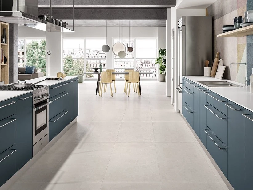 Piastrella in gres porcellanato rettificato 60×120 con effetto cemento. La superficie è leggermente mossa e gradevole al tatto. Il colore è un bianco avorio, caldo e luminosissimo: un prodotto facile da abbinare ad arredi di ogni stile, perfetto per dare luce e carattere ad ogni tipo di ambiente.