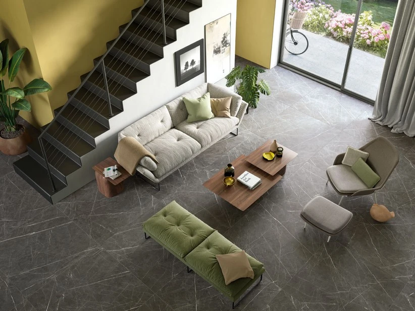 Piastrella in gres porcellanato rettificato di grandi dimensioni: 120×120, spessore 9mm. XLab Pietra Grey ricrea l’aspetto di un marmo grigio calcite: il fondo è di un grigio intenso, con sfumature antracite, ed è attraversato da decise venature bianche. Un prodotto decisamente di tendenza, adatto ad ambienti raffinati, sia in stile classico che contemporaneo. Elegantissimo se utilizzato da solo, può essere accostato a superfici in legno naturale, gres effetto legno, piastrelle colorate o decorate. XLab Pietra Grey può essere posata a pavimento e a rivestimento, in ambienti residenziali, commerciali e contract.
