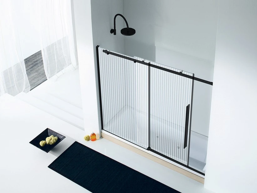 Cristallo spessore 8 mm trasparente con serigrafia a righe verticali.